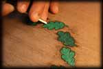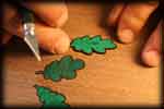 Recently, Rick was asked to make an oak leaf rosette on a classical guitar
