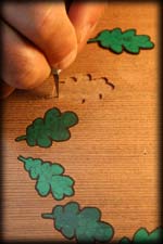 1mm black stroke around the leaves, they were first inlayed into ebony. Then